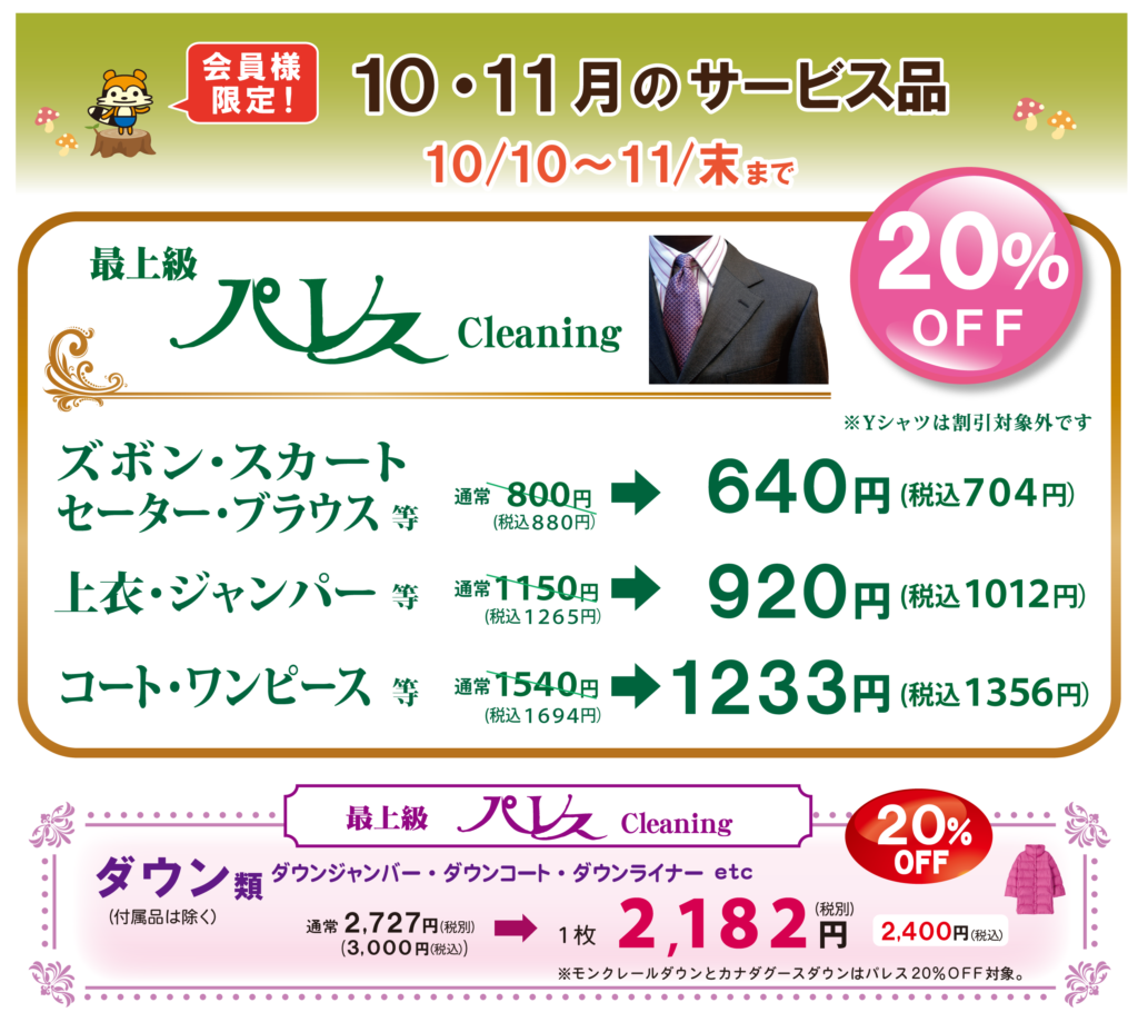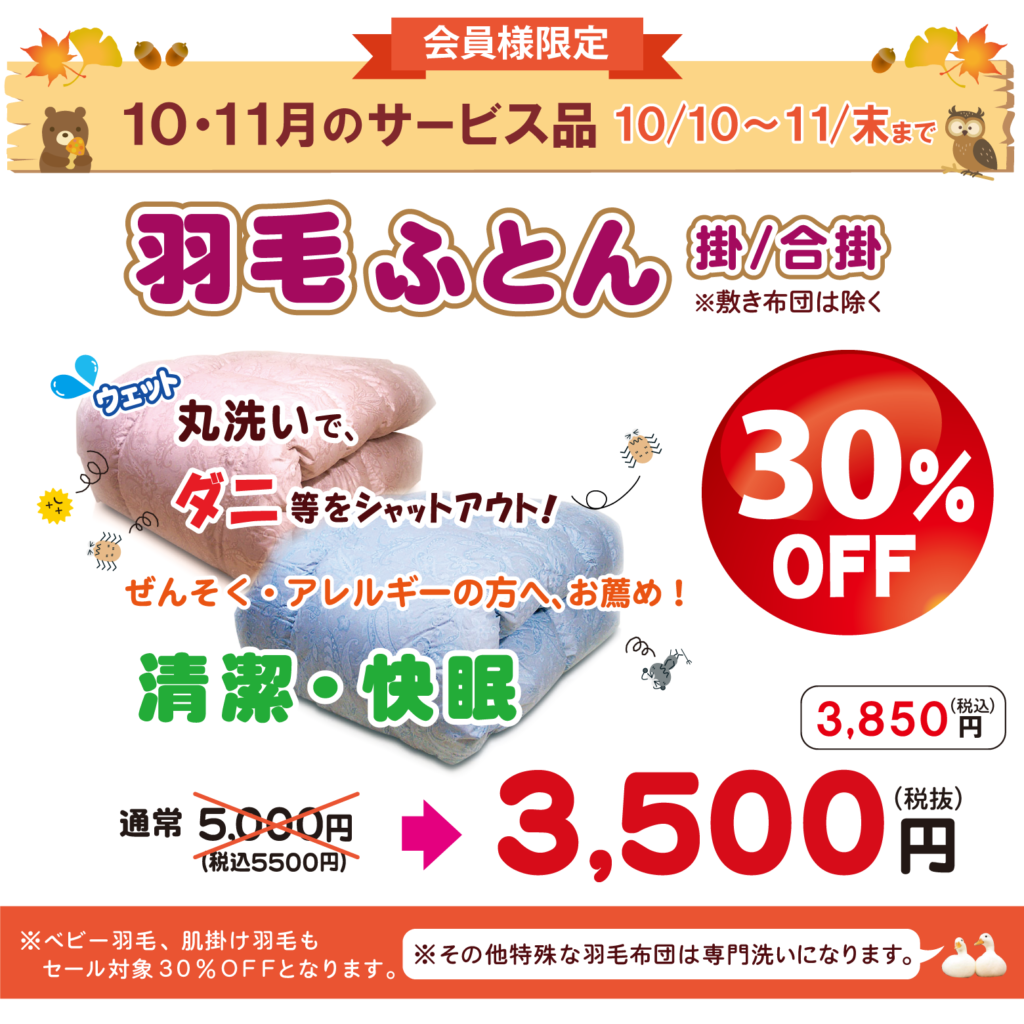 ☆会員様限定☆ 10月・11月とロングなサービス品のお知らせです