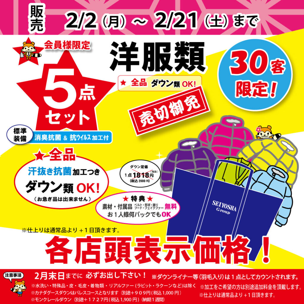 全品汗ぬき加工付! 全品ダウン類OK! 素材料金無料!